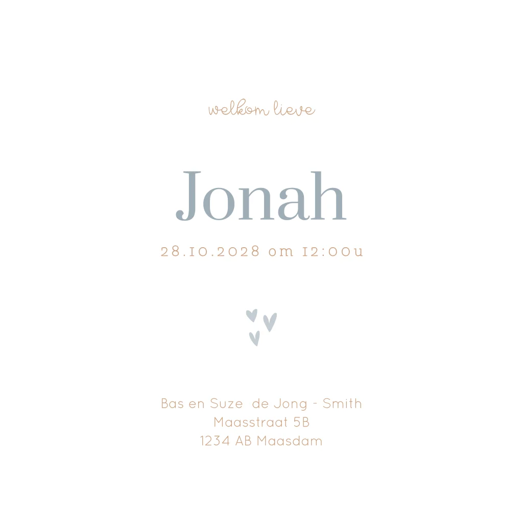 Hoera, er is een wondertje geboren! Maak de geboorte van jullie zoontje bekend met dit prachtige klassieke geboortekaartje. Iets aanpassen? Dat doe je gemakkelijk met de online editor.