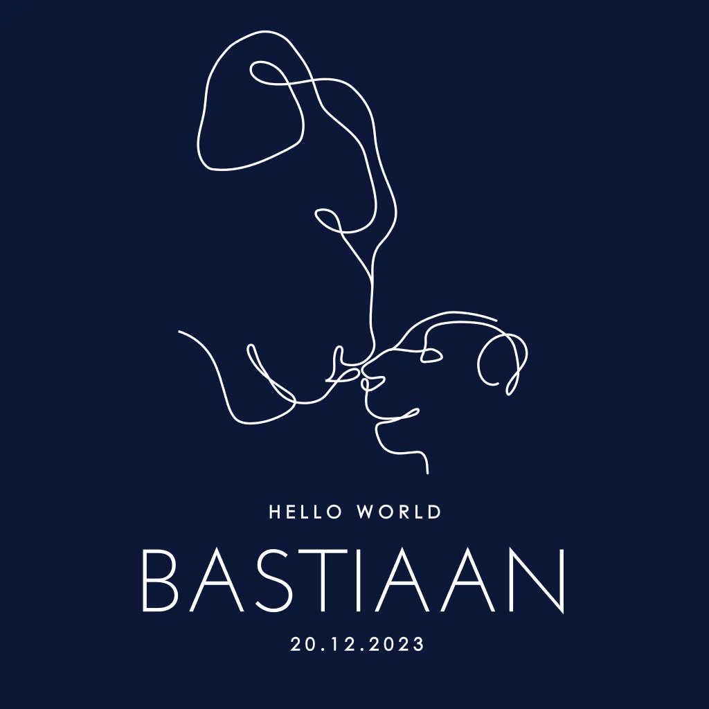 Een stoer en stijlvol babykaartje zoon met een prachtige one-line-drawning.