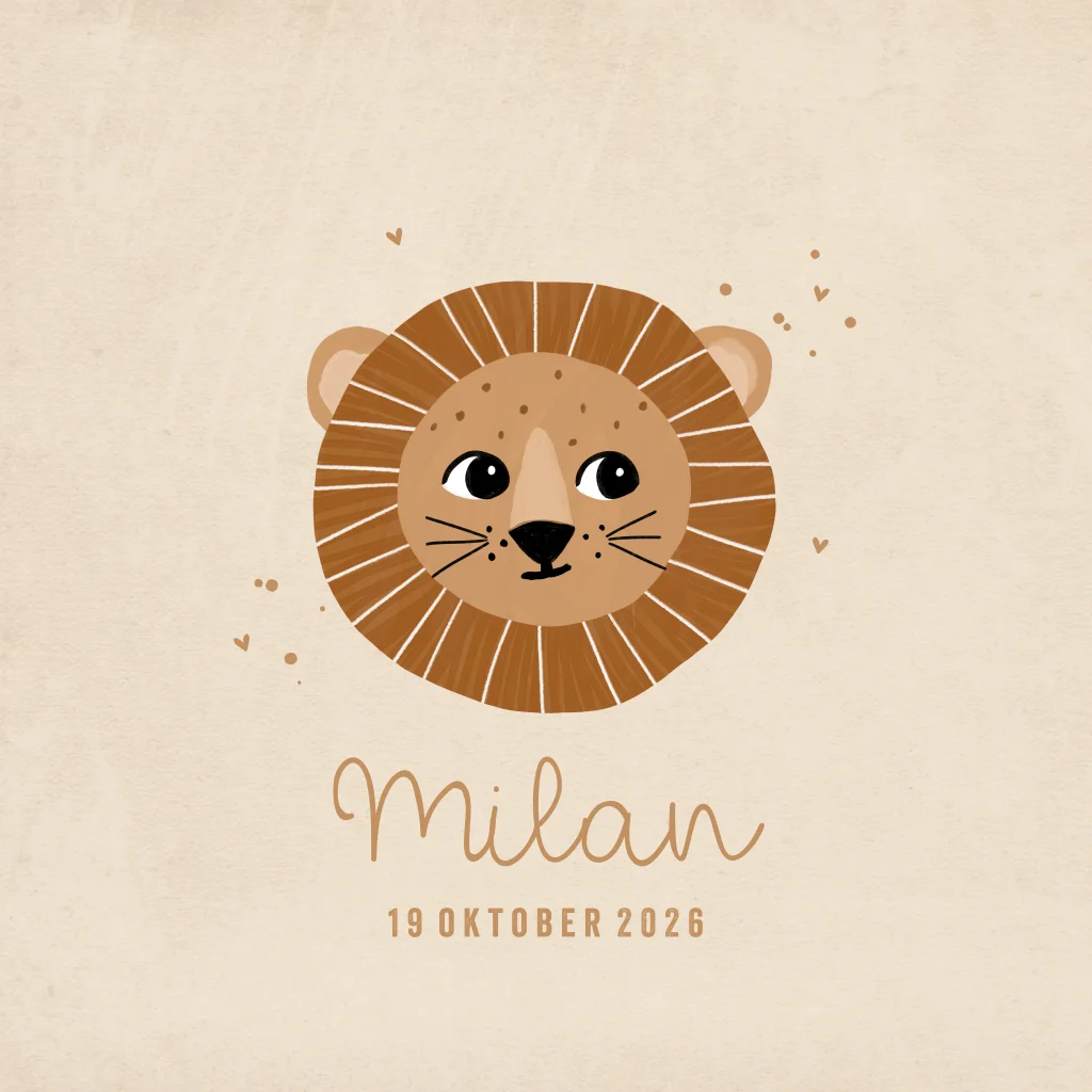 Geboortekaartje met leeuwtje in neutrale kleuren