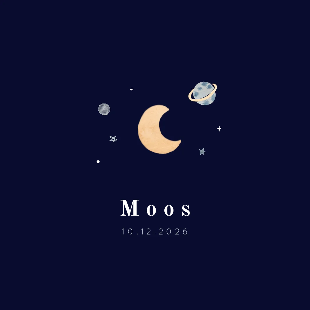 Ga voor bijzonder en kies voor een geboortekaartje waarbij de maan en planeten de hoofdrol spelen. De watercolor illustraties en het gebruik van goudfolie maken dit een onwijs stijlvol geboortekaartje.