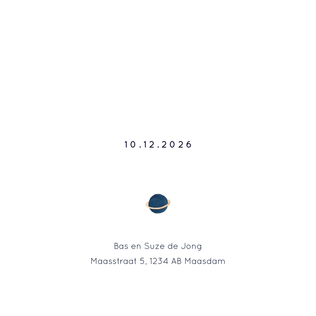 Geboortekaartje met planeten en maan voor jongen met goudfolie