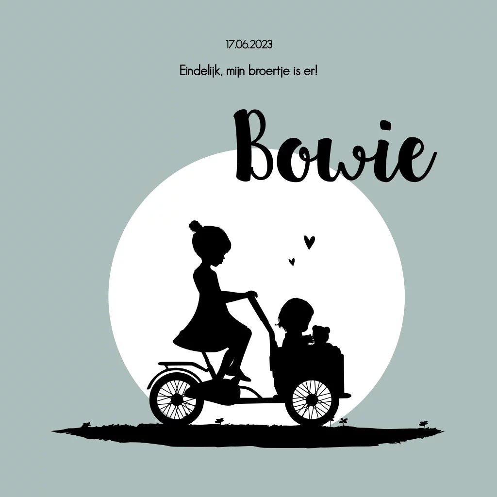Zo lief dit geboortekaartje zoon met bakfiets. Samen op pad! Kies je kleur, plaats tekst en maak je eigen kaartje. Bestel eenvoudig een proefdruk.