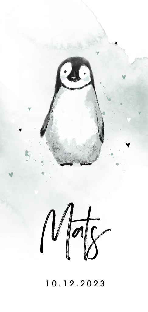 Verwacht je jouw kleintje in de winter? Ga dan voor een geboortekaartje in winter thema! Dit lieve kaartje met pinguïn past perfect bij de koude wintermaanden.