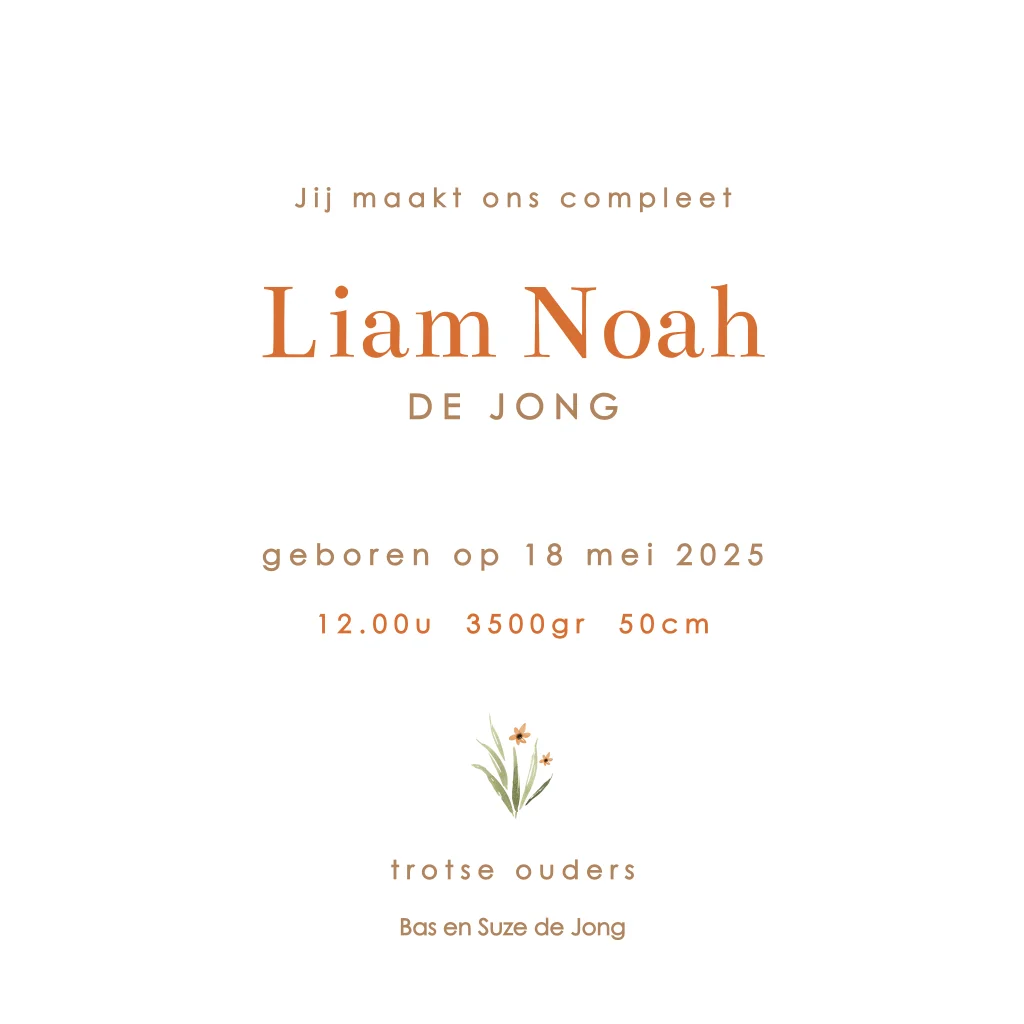 Goed om te weten: dit design bevat een kader. Omdat de kaarten na het drukken op een groot vel pas worden uitgesneden op het juiste formaat, kan het zijn dat het kader íetsje smaller of breder uitvalt. Dit gaat slechts om een paar millimeter, maar we willen het wel graag vermelden.