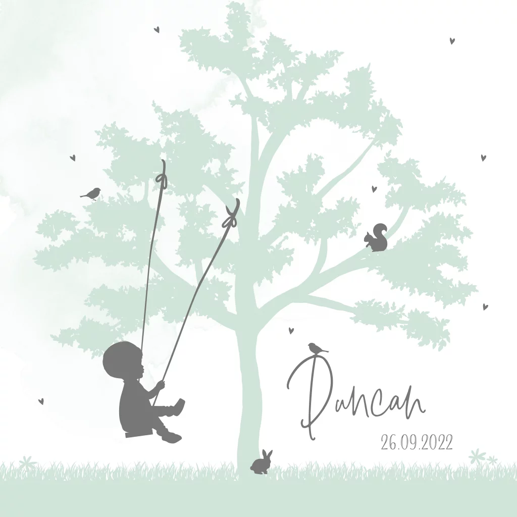 Geboortekaartje jongen met silhouet jongen op schommel