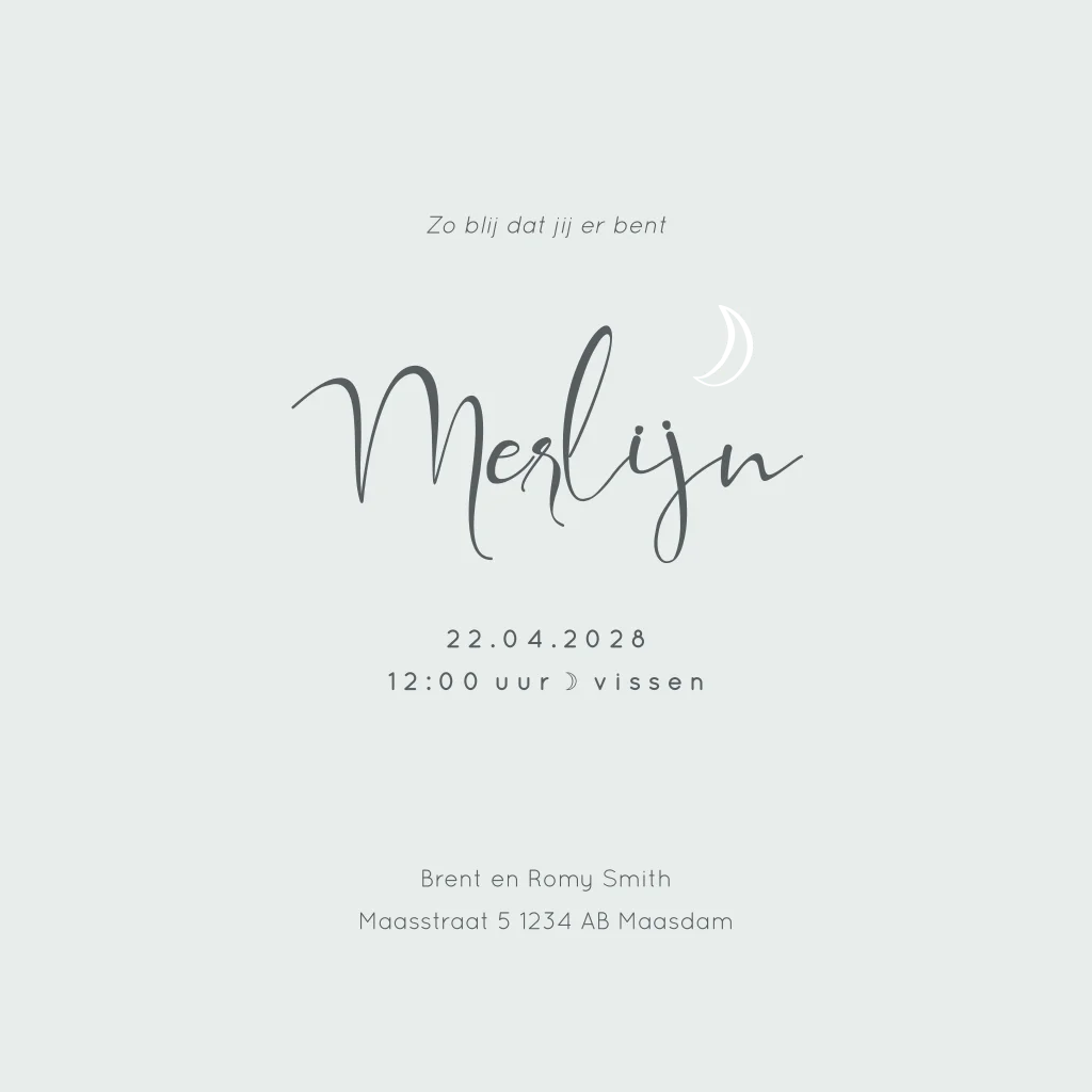 Op zoek naar een prachtig geboortekaartje voor jullie kleine jongen? Dan is dit geboortekaartje met donkere sterrenhemel en goudfolie precies wat je zoekt! Je past gemakkelijk kleuren, lettertypes en andere elementen aan met de online editor.