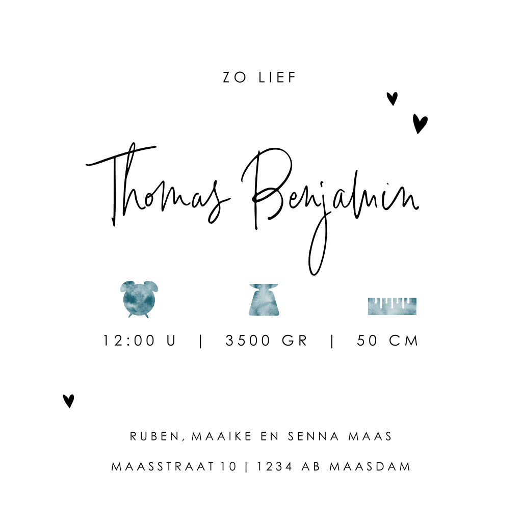 Geboortekaartje jongen stoer waterverf