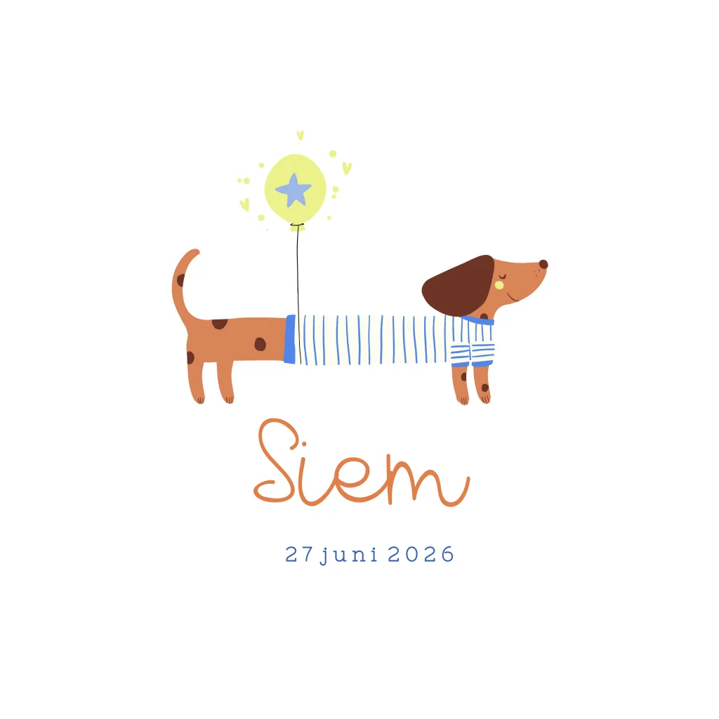 Een geboortekaartje volgens de laatste trends. Teckels zijn niet meer weg te denken uit onze collecties en wij zijn er dol op. Kies eenvoudig afbeeldingen uit onze beeldbank, voeg een eigen foto en tekst toe en maak je unieke geboortekaartje. Lees hier onze tips voor het ontwerpen van het kaartje. Vragen? We helpen je graag!