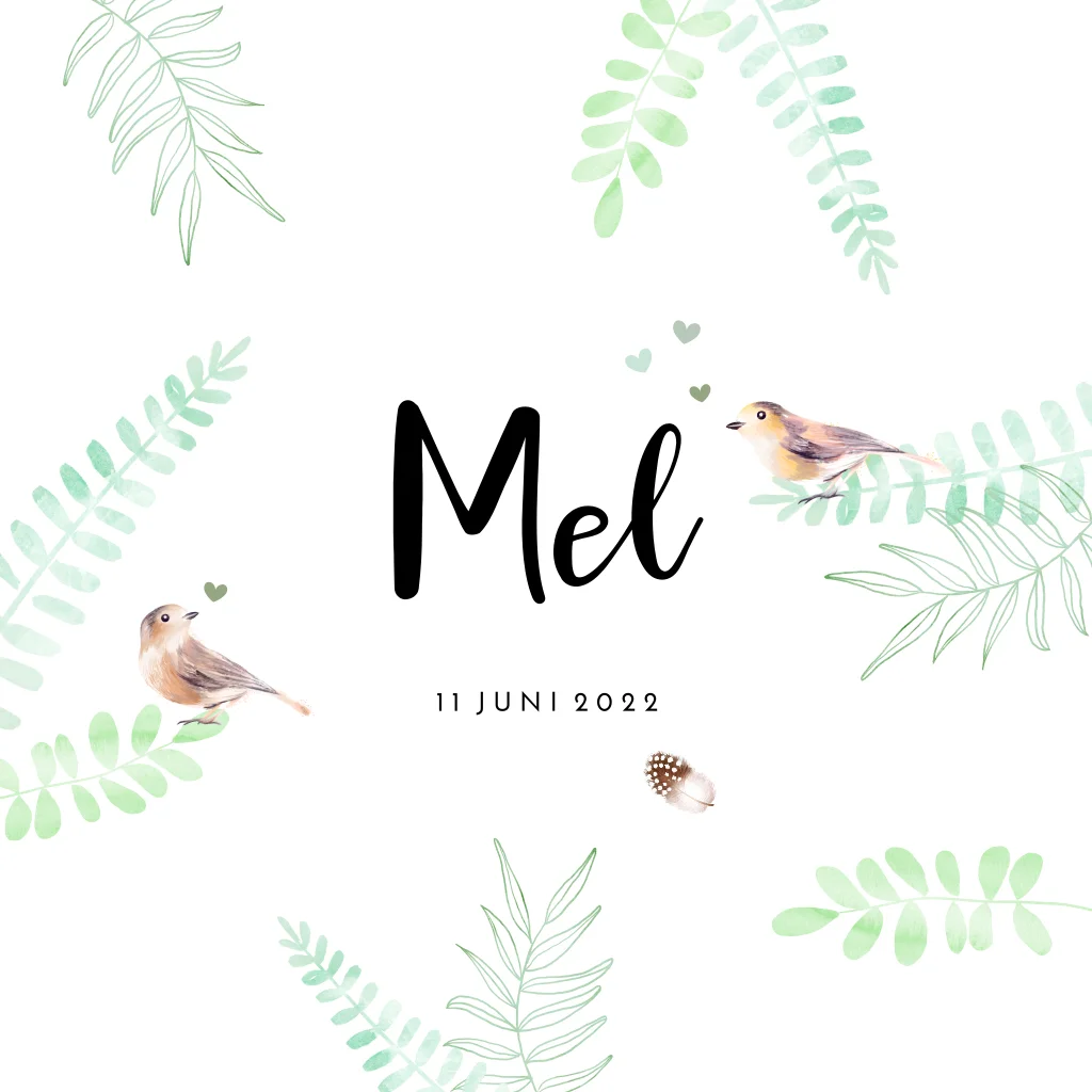 Lief kaartje geboorte zoon met vogeltjes