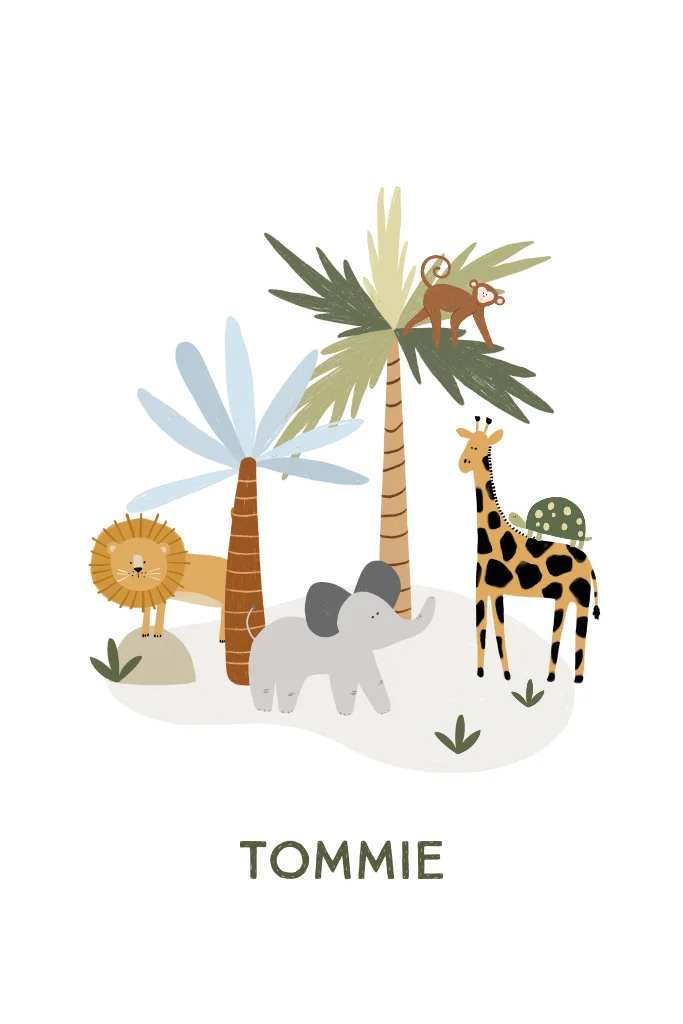 Een geboortekaartje volgens de laatste trends. Jungle elementen zijn niet meer weg te denken uit onze collecties. Wij zijn er dol op.