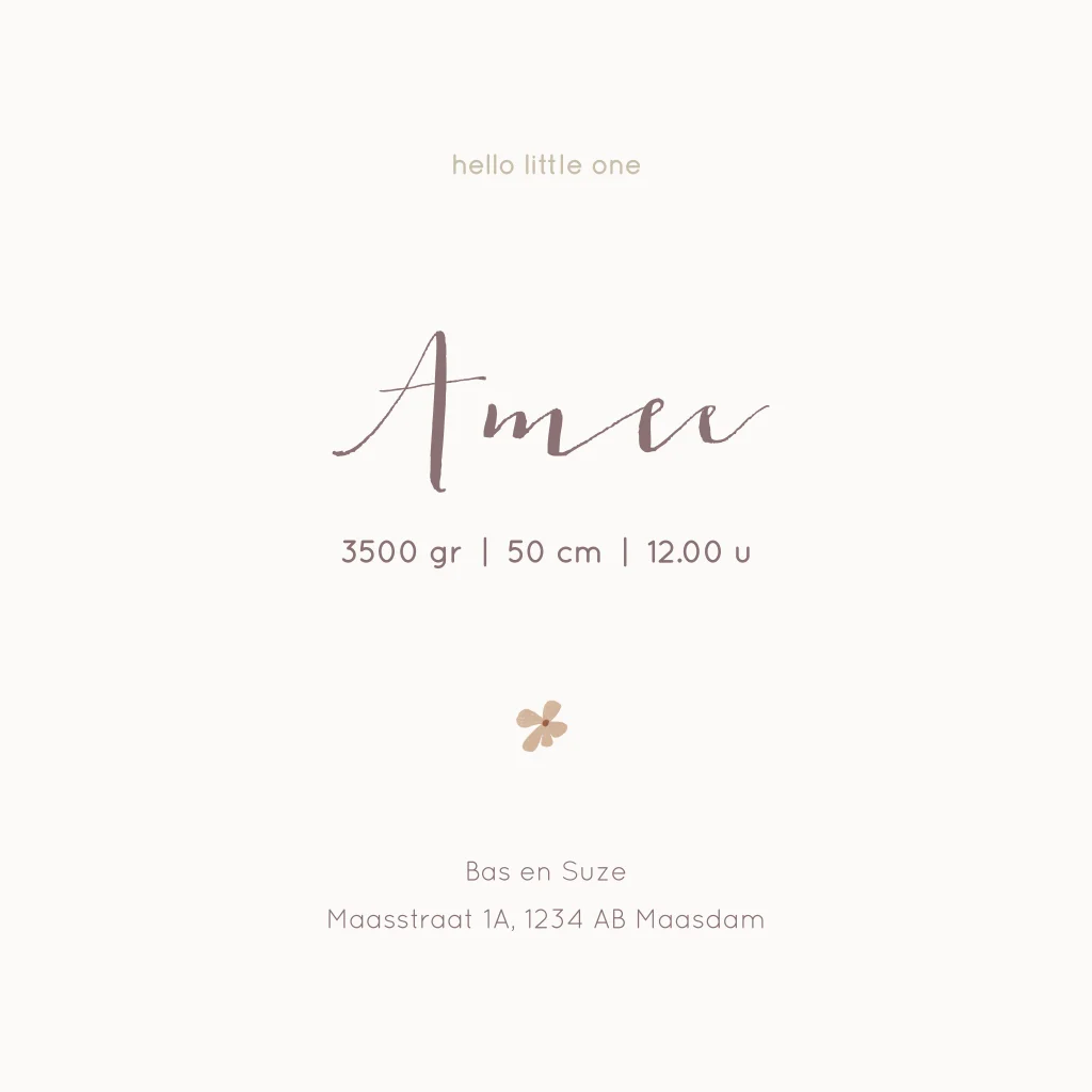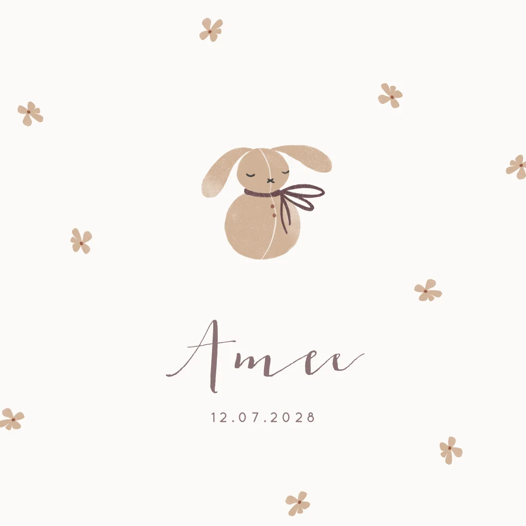 Wat een lief klassiek geboortekaartje is dit voor je kleintje! Prachtig in neutrale tinten, bloemetjes en konijntje.