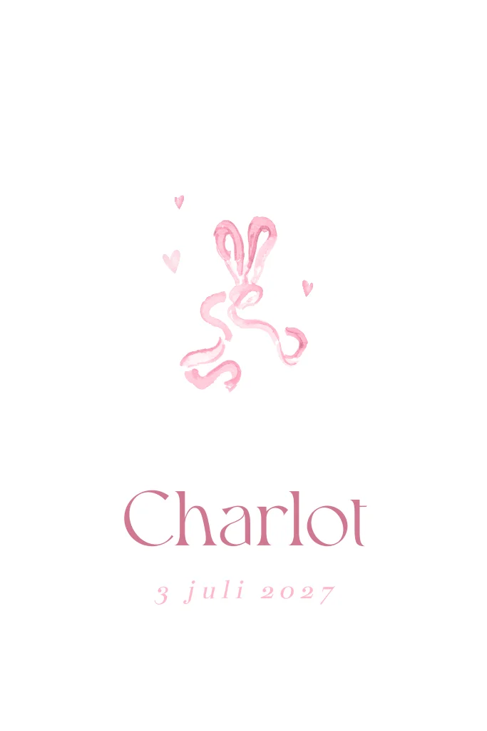 Hoera, een meisje! Maak de geboorte van jouw dochtertje bekend met dit klassieke geboortekaartje. De roze details mogen natuurlijk niet ontbreken!
