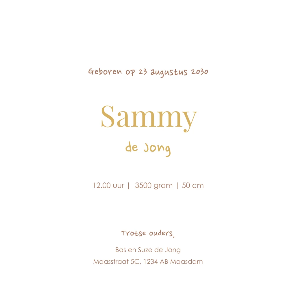 Plaats zelf de teksten en elementen eenvoudig op de juiste plek in onze opmaaktool. Heb je hier hulp bij nodig? Neem gerust even contact met ons op!