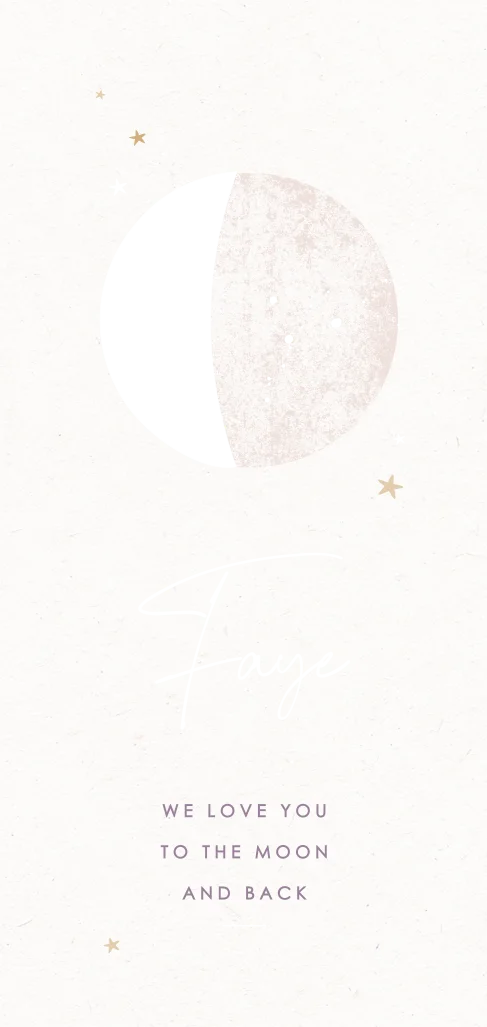 Geboortekaartje met maanstand en holografische foliedruk