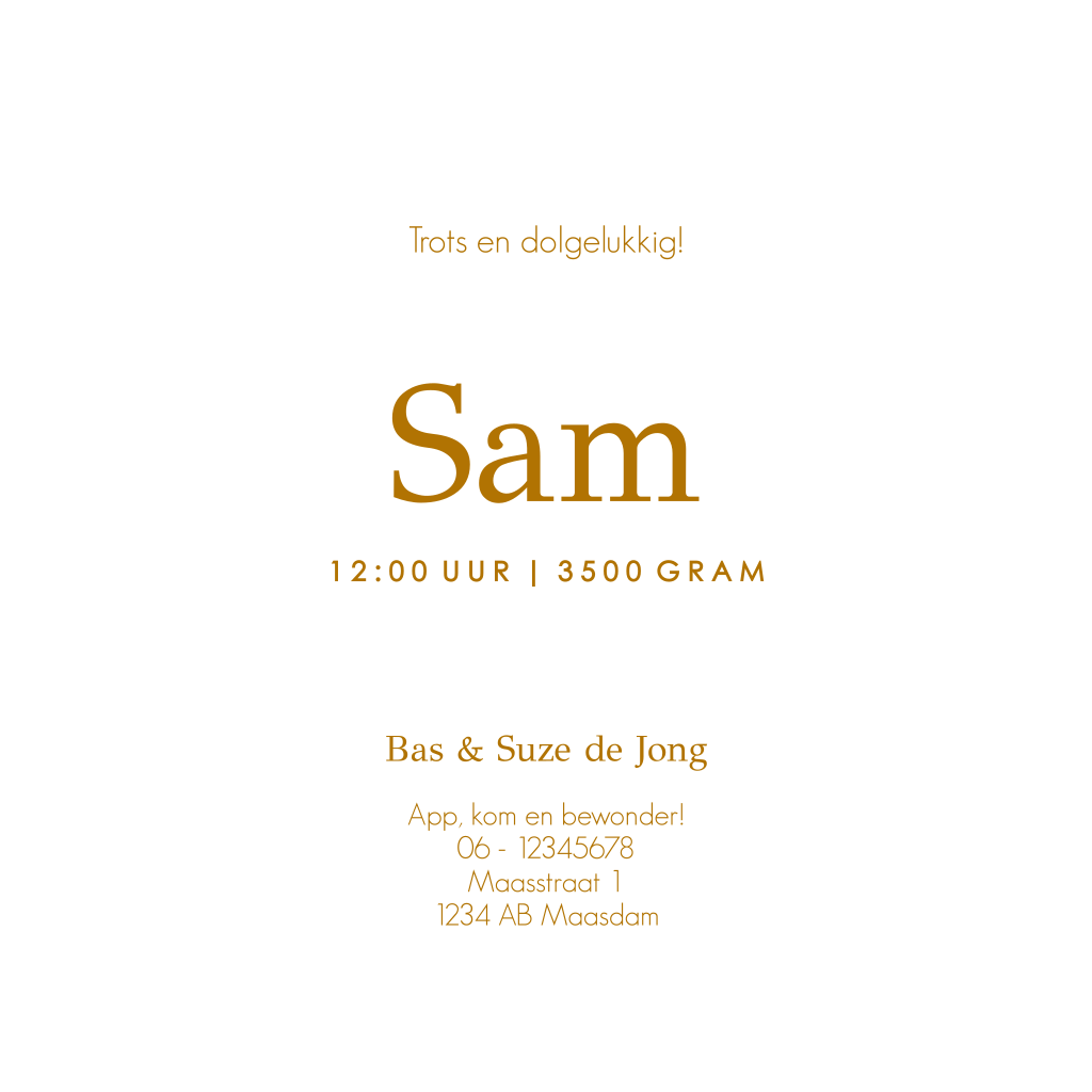 Wat een gaaf kaartje is dit! Speciaal voor jullie kleintje, ontwierpen wij dit geboortekaartje. Het gebruik van de velvet afbeelding op de achtergrond en lettertype in goudfolie maakt dit kaartje zowel voor een jongen als een meisje geschikt.