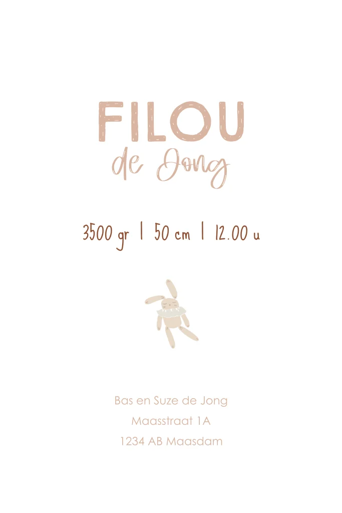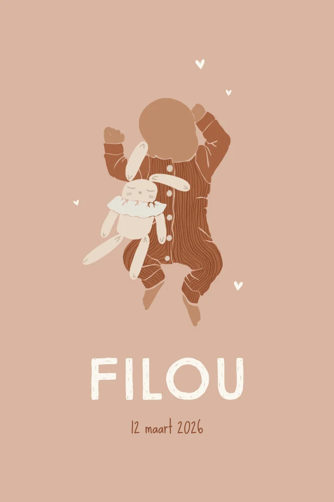 Speciaal voor jullie kleine meisje, ontwierpen wij dit geboortekaartje met illustratie van een baby met een konijntje. Wist je dat je achtergrond zelf kunt aanpassen? Zo kun je het kaartje helemaal eigen maken.