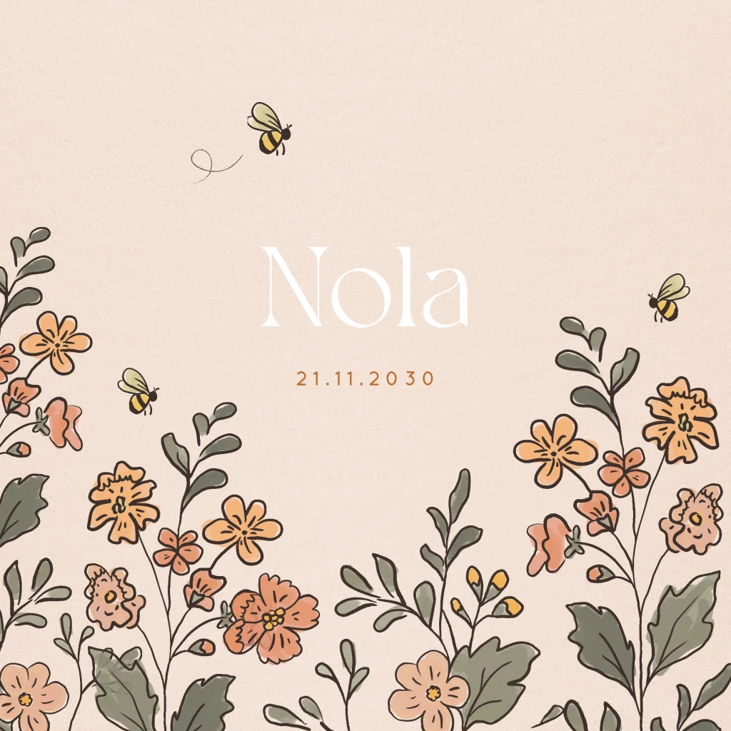 Wat een leuk geboortekaartje voor je kleine meisje! De lentebloemen en de bijtjes maken deze kaart super vrolijk. De naam van je kleintje staat in goudfolie voor een luxe finish. Liever een andere kleur? Pas de kaart eenvoudig naar wens aan in de online editor.