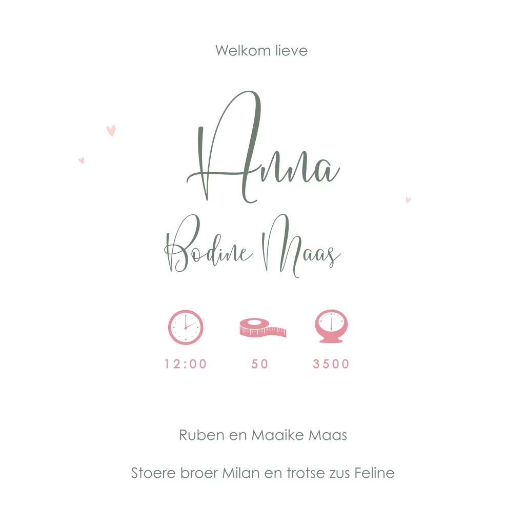 Een prachtig kaartje geboorte meisje geïnspireerd door de Dutch Masters. Een design van ons eigen merk. Stijlvolle kleuren oudroze en grijsgroen.