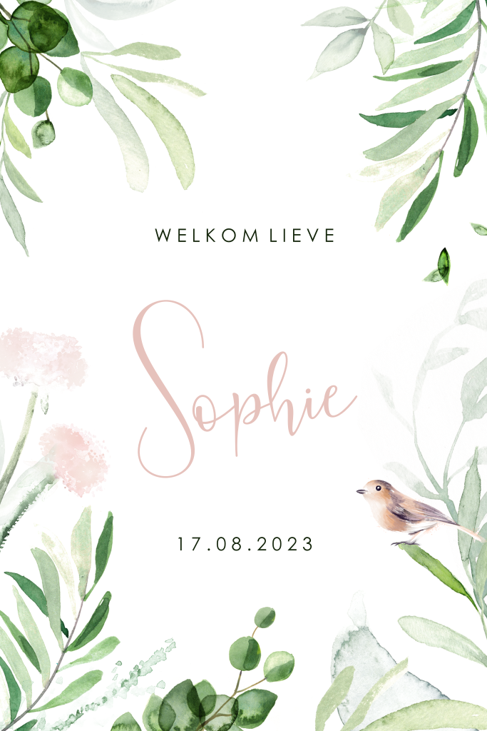 Hoe lief is dit lente geboortekaartje? Kies voor jullie meisje een floral geboortekaartje en maak het helemaal van jullie door het toevoegen van bijvoorbeeld illustraties uit de beeldbank.
