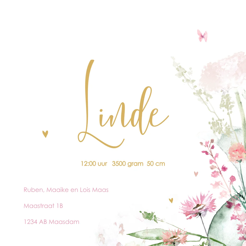 • Wij vinden een roze envelopkleur heel mooi passen bij dit geboortekaartje.
