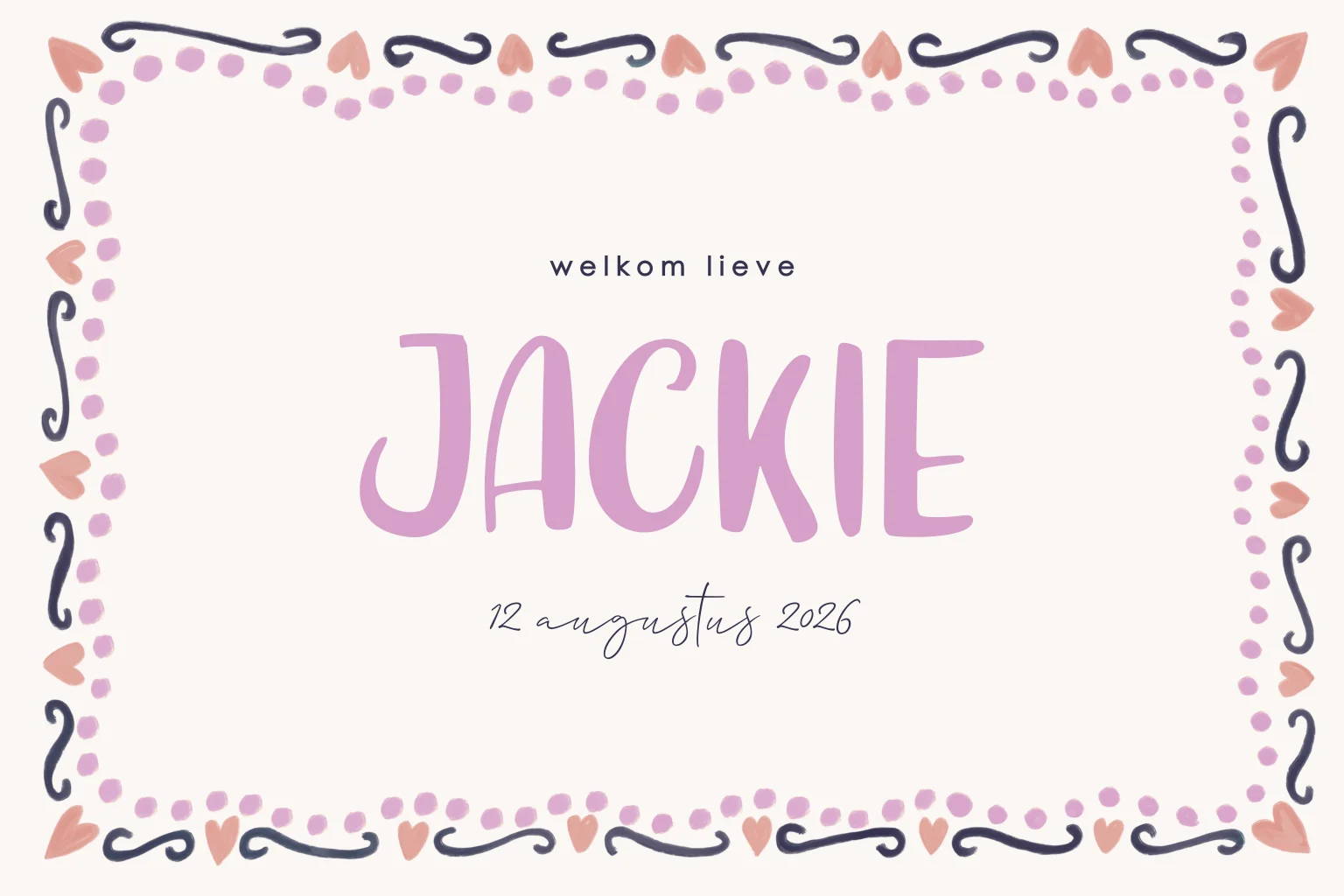 Goed om te weten: dit design bevat een kader. Omdat de kaarten na het drukken op een groot vel pas worden uitgesneden op het juiste formaat, kan het zijn dat het kader íetsje smaller of breder uitvalt. Dit gaat slechts om een paar millimeter, maar we willen het wel graag vermelden.