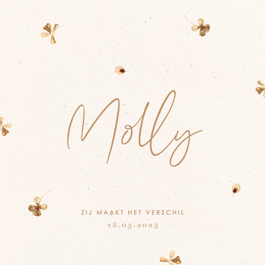 Een geboortekaartje volgens de laatste trends. We hebben hiervoor échte bloemen geperst en op de kaart geplaatst, dat maakt het kaartje helemaal bijzonder!