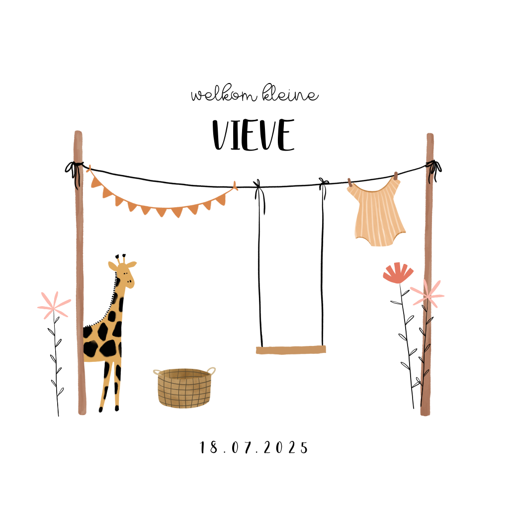 Geboortekaartje meisje giraf schommel vlaggetjes