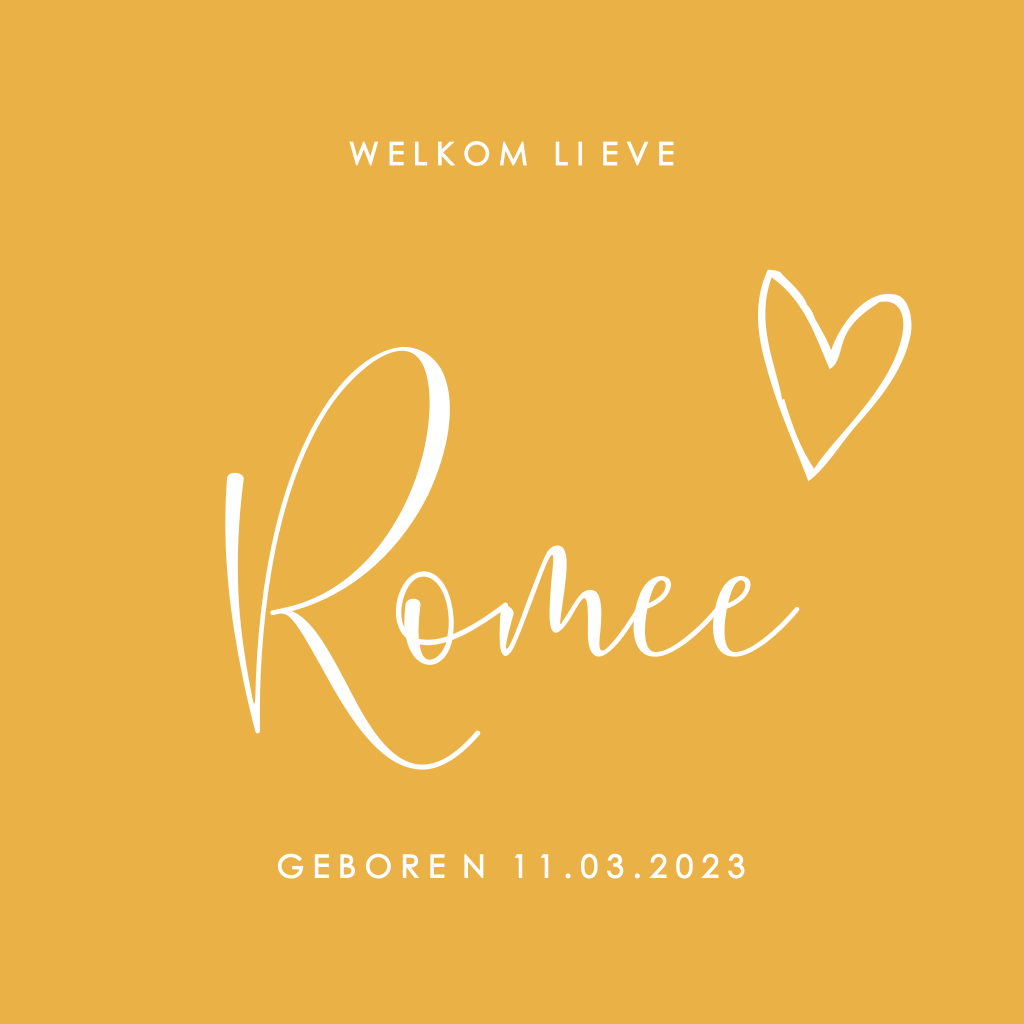 Geboortekaartje meisje goudfolie hartje hip okergeel