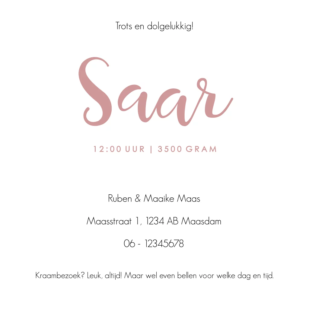 • Een envelop in de kleur wit is het mooist bij dit geboortekaartje.
