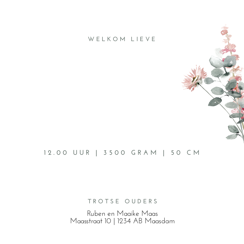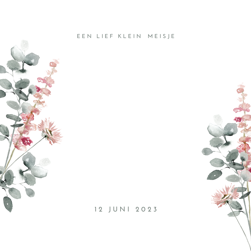 Een lief geboortekaartje met eucalyptus takjes voor de geboorte van een dochter. De sierlijke letters worden gedrukt in echt goudfolie net zoals de hartjes. Aan de binnenkant van de kaart is ruimte voor een foto. Leuk met een zand envelop en gouden sluitzegel.