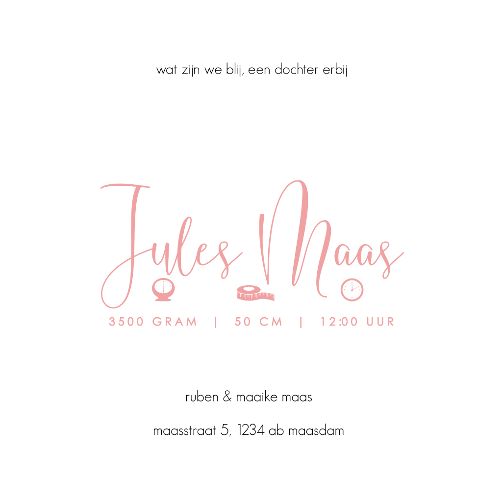 Een clean en lief geboortekaartje meisje met naam in onze favoriete kleur en lettertype. Voor welke kleur kies jij? Is je ontwerp gereed? Maak eenvoudig een proefdruk.