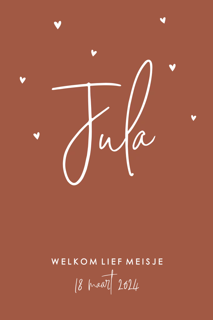 Bij de geboorte van jullie kleintje, hoort een speciaal geboortekaartje. Wat dacht je van dit ton sur ton kaartje met roséfolie? Onwijs lief en stijlvol door de toevoeging van een velvet lintje. De naam krijgt extra aandacht doordat deze gedrukt wordt in roséfolie.