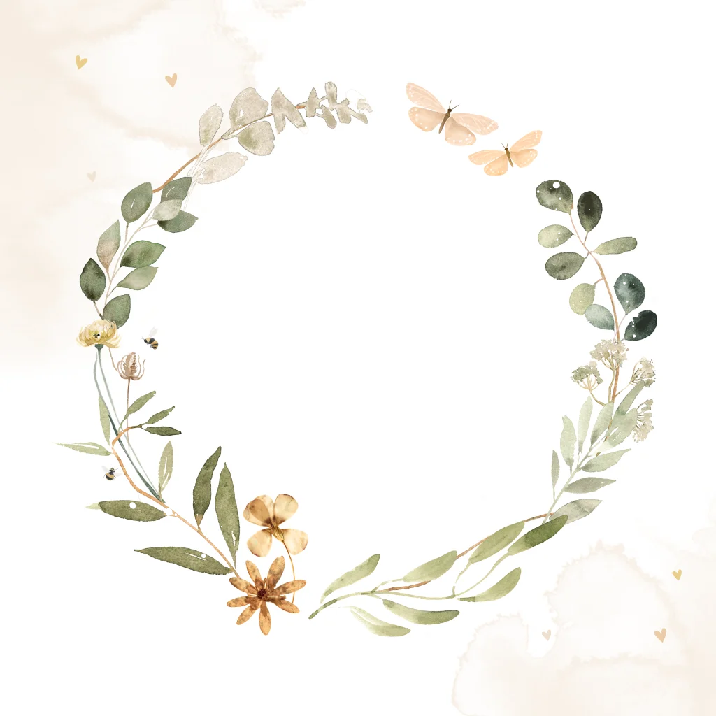 Stijlvol geboortekaartje voor meisje met bloemenkrans en goudfolie