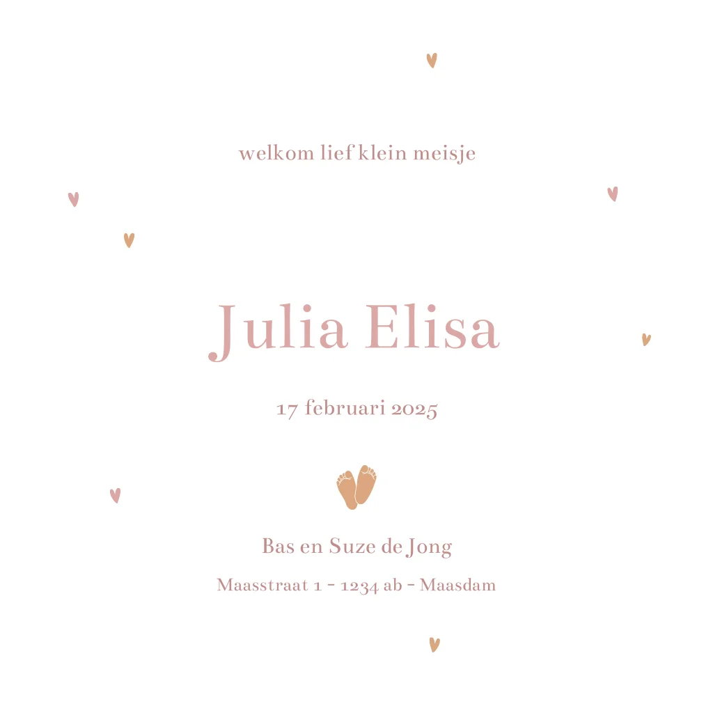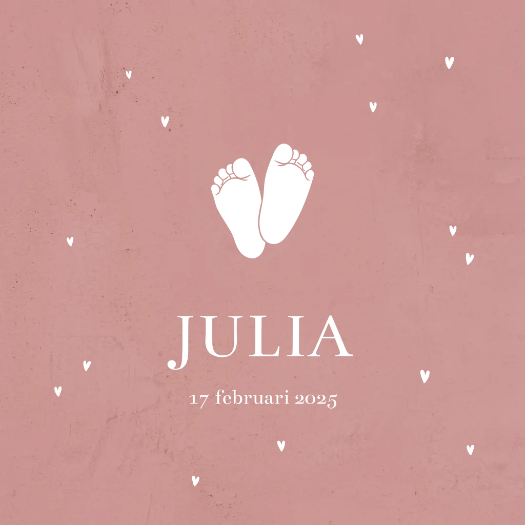 Geboortekaartje meisje met baby voetjes in rosefolie