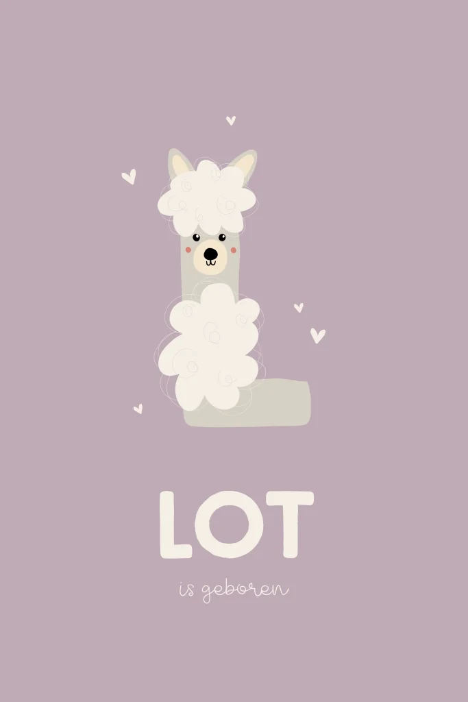 Grappig geboortekaartje meisje met initiaal en bijpassend diertje