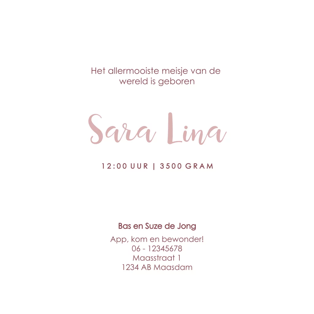 Laat de hele buurt het weten: jullie kleintje is geboren! Dat kan met een geboortebord in de stijl van dit kaartje. Klik op dit ontwerp in jullie eigen collectie en je ziet daaronder al direct een geboortebord van jullie kaartje verschijnen.