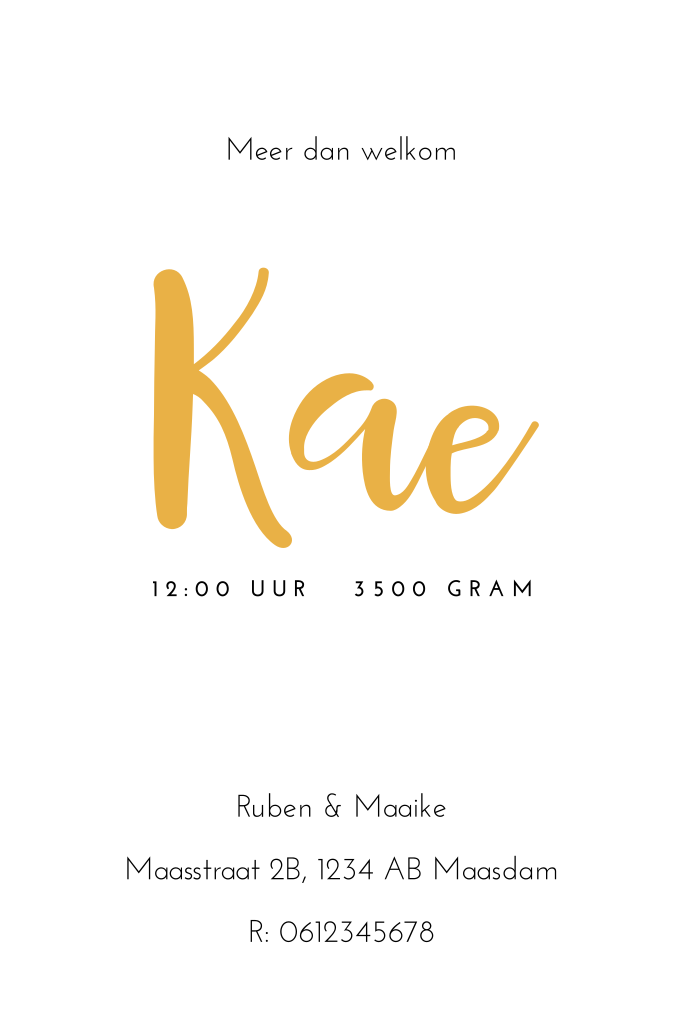 Hip geboortekaartje voor een meisje met trendy okergele achtergrond