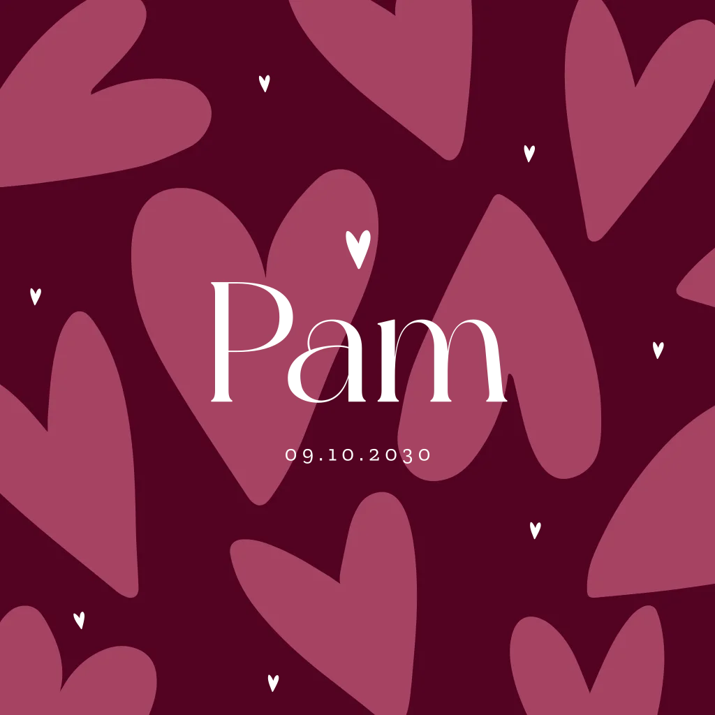 Geboortekaartje meisje in rood/ roze met hartjes en mat goudfolie