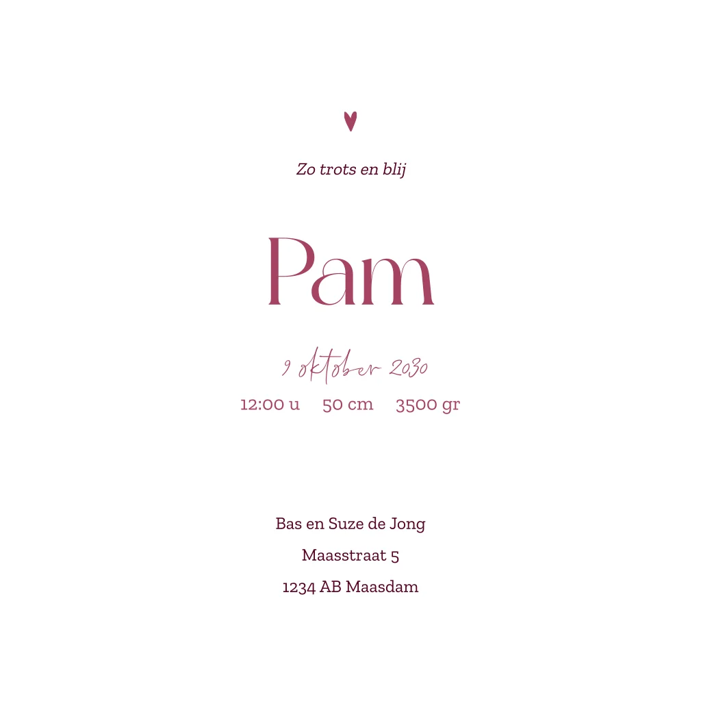 Wauw, wij zijn helemaal verliefd op dit prachtige geboortekaartje! Een gave kleurcombinatie van rood en roze. De mat goudfolie details geven dit kaartje een luxe finish.