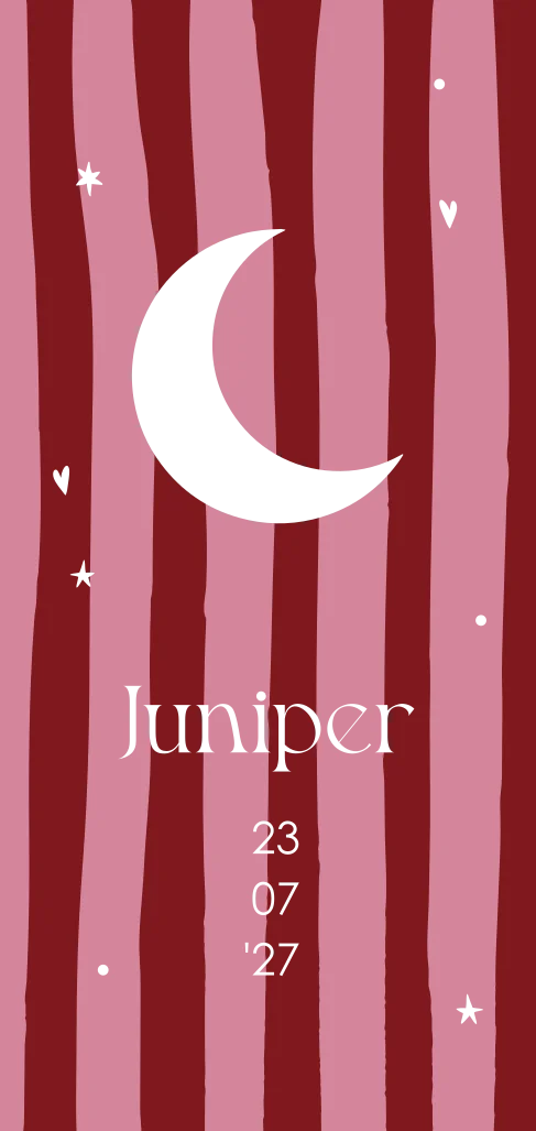 Geboortekaartje meisje met roze strepen en maan in roséfolie