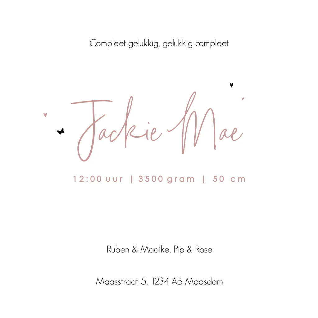• Op de papiersoort Natuurkarton komt dit geboortekaartjes het mooist tot zijn recht..