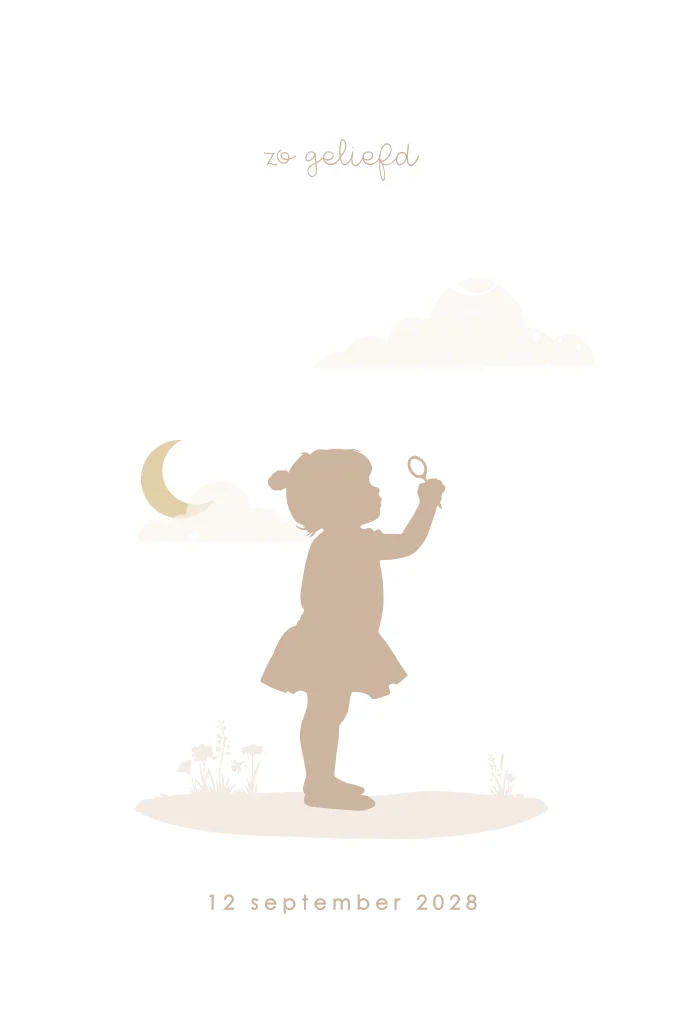 Geboortekaartje silhouet meisje met goudfolie