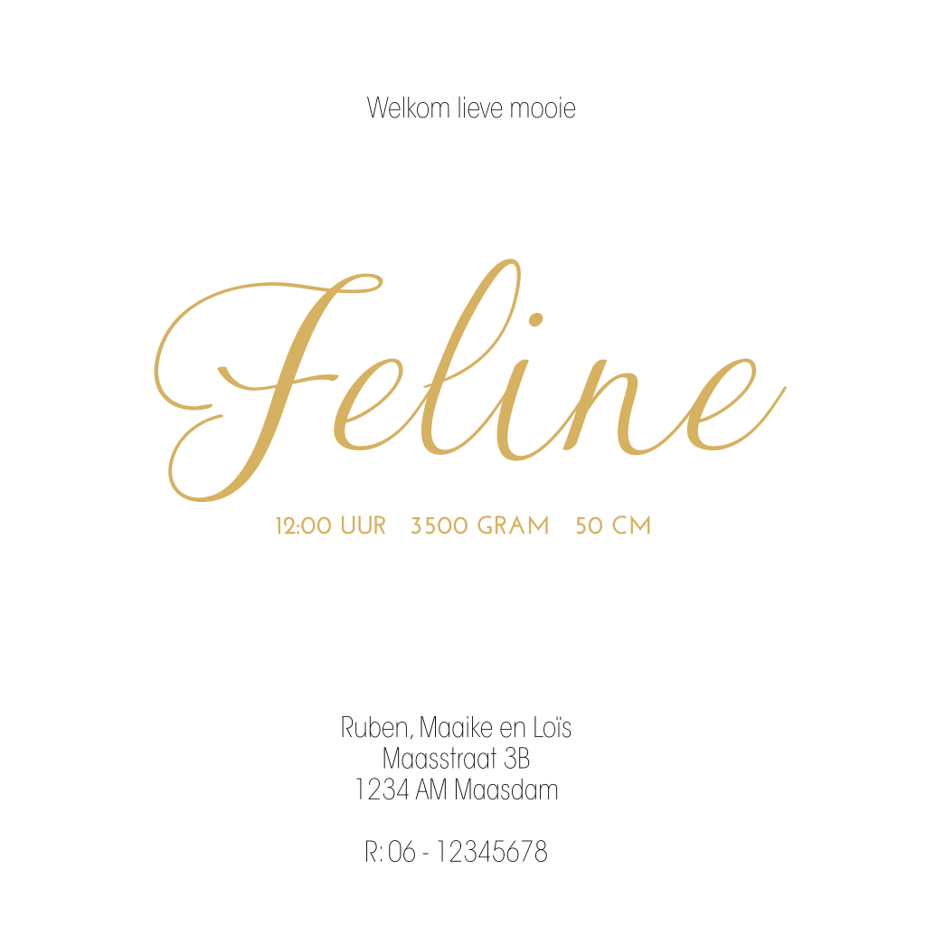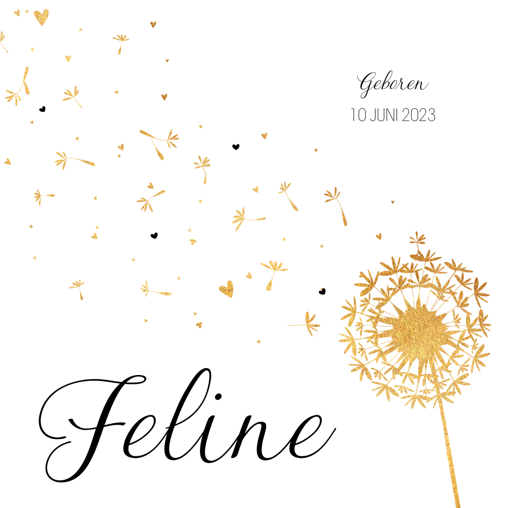 Stijlvol geboortekaartje voor jullie pasgeboren dochter met een gouden paardenbloem.