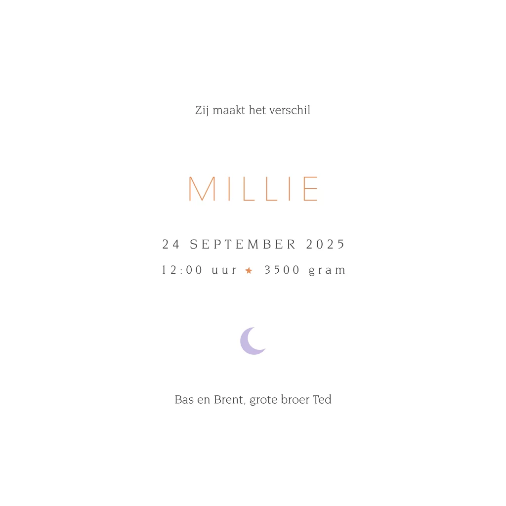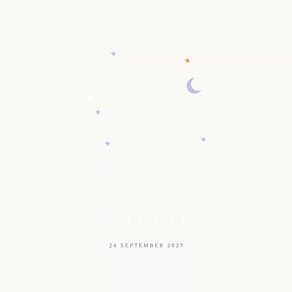Ga voor bijzonder en kies voor een geboortekaartje uit onze collectie met Lizet Greve waarbij de het sterrenbeeld de hoofdrol speelt. De lila kleur in combinatie met goudfolie maakt het helemaal van nu. Je past het sterrenbeeld gemakkelijk aan via de beeldbank in onze editor.