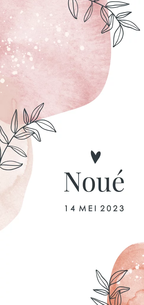 Bij de geboorte van jullie kleintje, hoort een bijzonder geboortekaartje. Wat dacht je van dit trendy kaartje met watercolor en takjes? Maak het helemaal eigen door het toevoegen van illustraties uit de beeldbank die bij jullie passen.