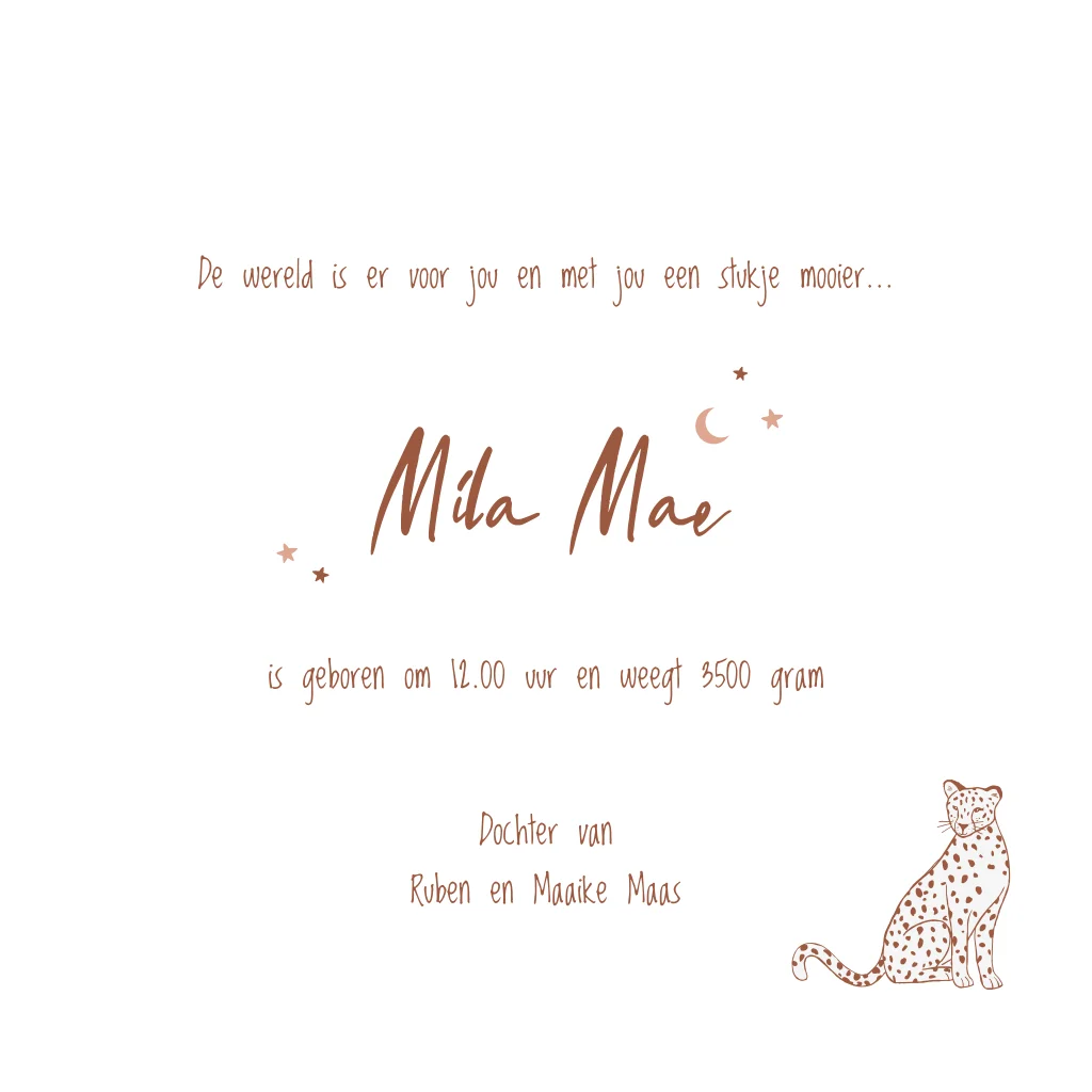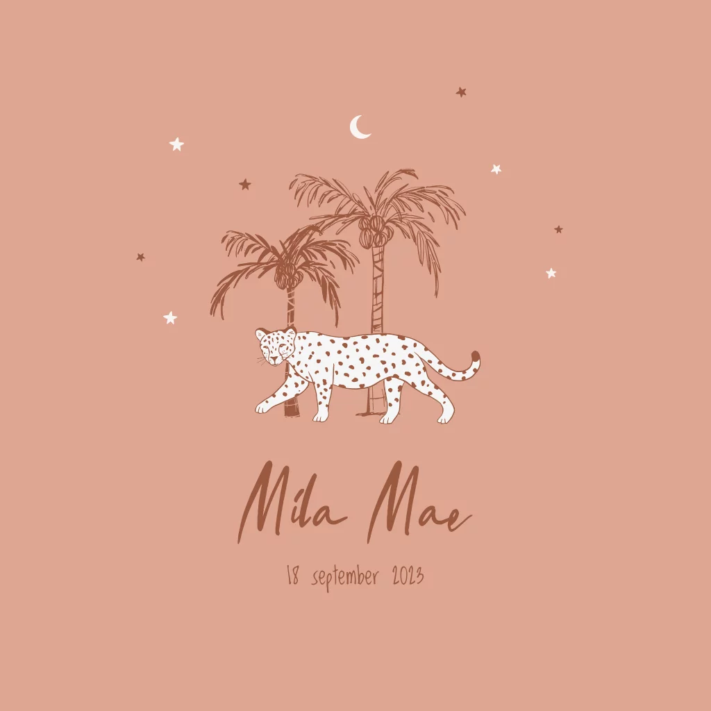 Geboortekaartje meisje met panter in trendkleuren
