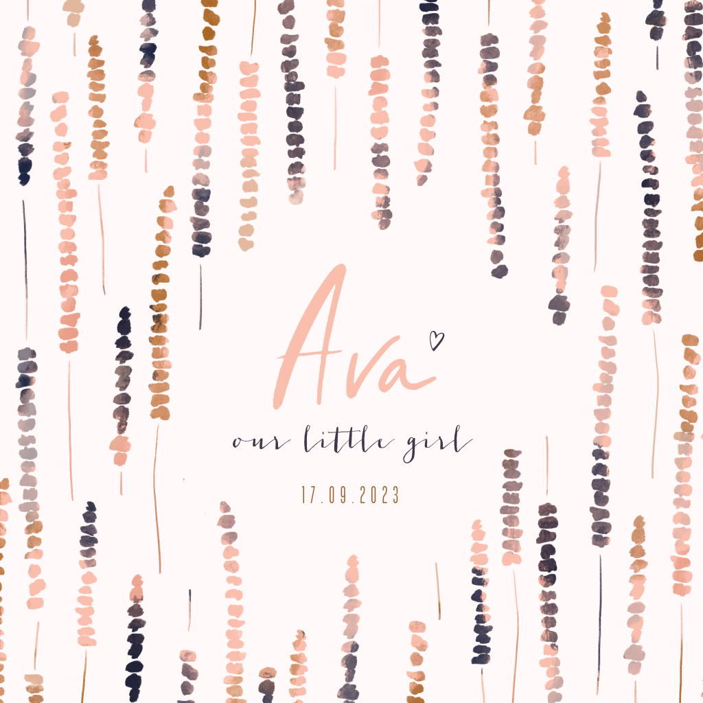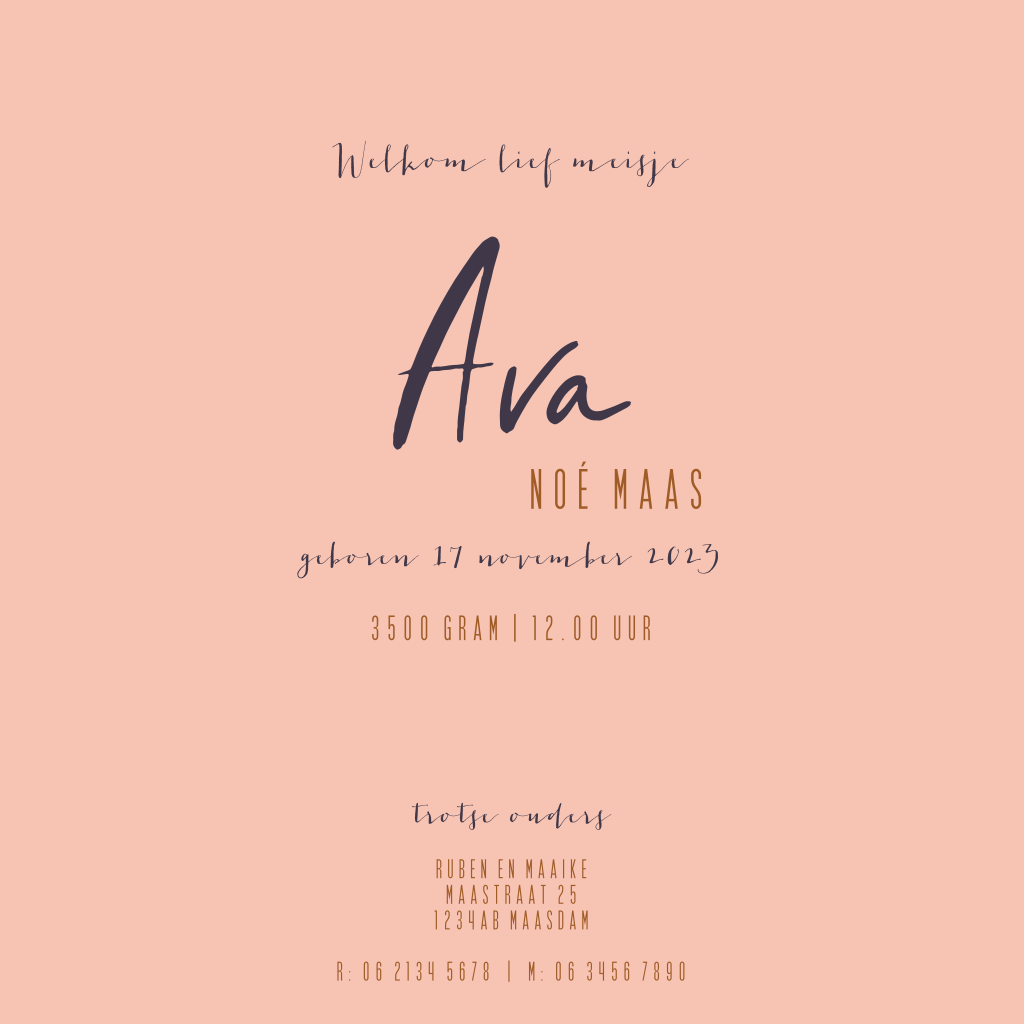 Een prachtig grafisch design in warme kleuren peach. Heerlijk stoer en stijlvol door het gebruik van verschillende lettertypes. Mooi op yvory gold.