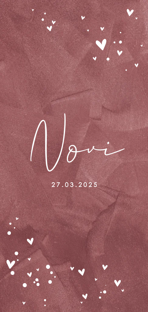 Lief geboortekaartje meisje velvet look met roséfolie en hartjes