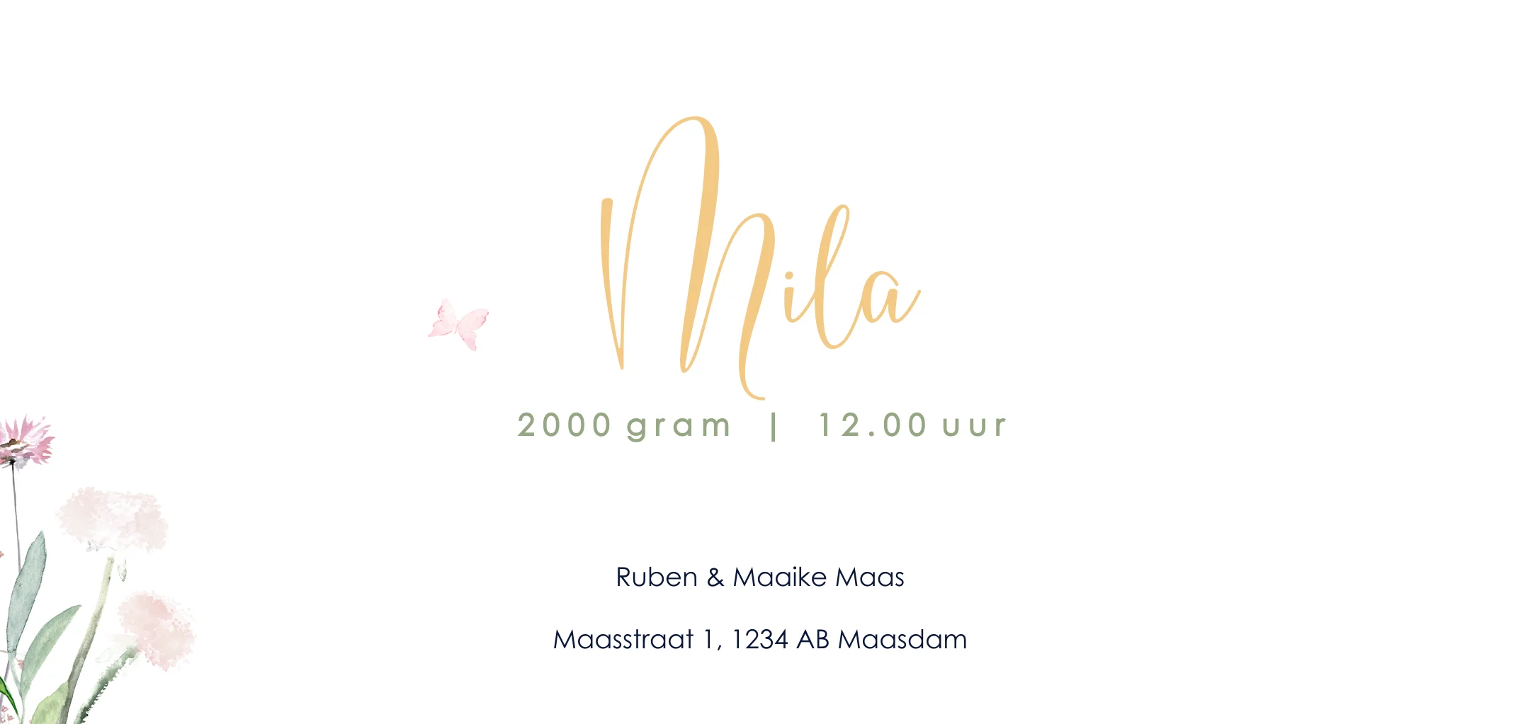 Bij de geboorte van jullie kleintje, hoort een bijzonder geboortekaartje. Wat dacht je van dit romantische kaartje met een rand van veldbloemen? Super uniek door de opvallende goudkleurige elementen. Maak het helemaal eigen door het toevoegen van illustraties uit de beeldbank die bij jullie passen.