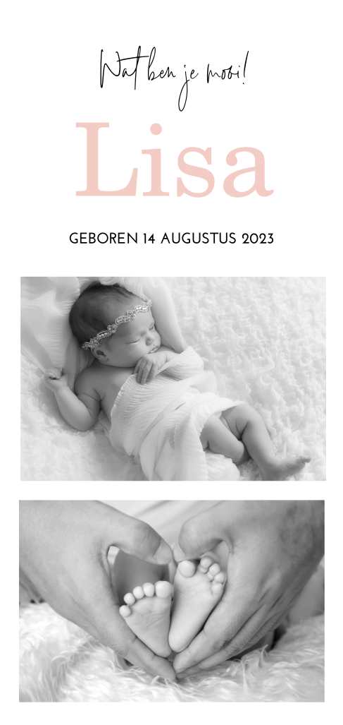 Goed om te weten: dit design bevat een kader. Omdat de kaarten na het drukken op een groot vel pas worden uitgesneden op het juiste formaat, kan het zijn dat het kader íetsje smaller of breder uitvalt. Dit gaat slechts om een paar millimeter, maar we willen het wel graag vermelden.